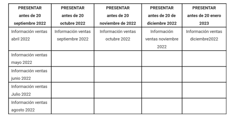 Deberá realizarse un envío por cada uno de los meses de aplicación de la bonificación y por cada Administración competente a la que se haya solicitado la devolución en los siguientes plazos:
