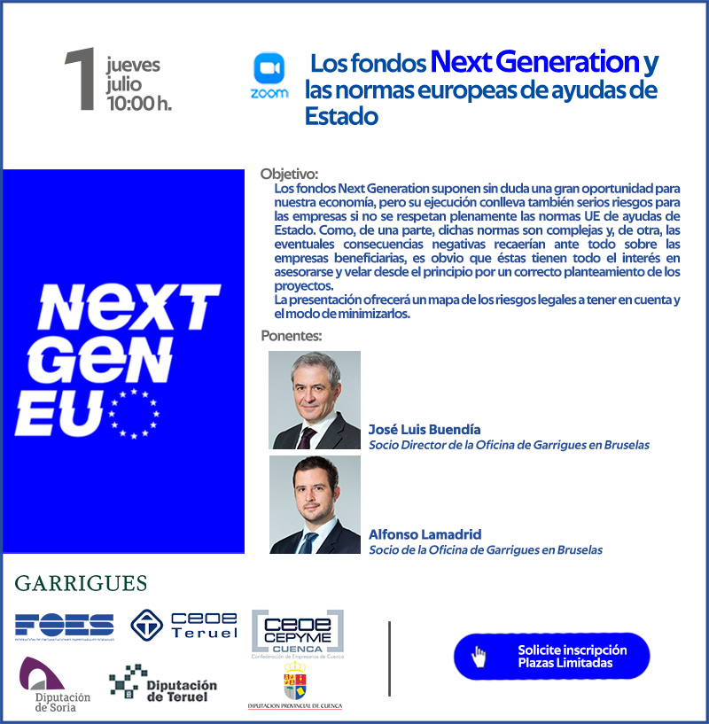 Jornada Online: Los fondos Next Generation y las normas europeas de ayudas de Estado | 1 Julio - 10:00h.