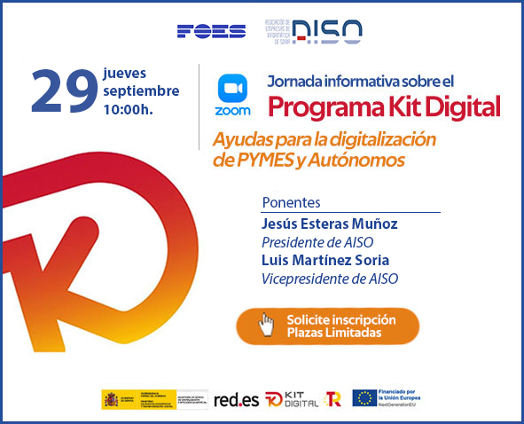 La Asociación de Empresas Informáticas de Soria (AISO) organiza una nueva jornada de trabajo para ampliar el conocimiento del empresariado soriano sobre el Kit Digital, la iniciativa con la que el Gobierno de España quiere generalizar la implantación de soluciones digitales en el mercado para pequeñas empresas, microempresas y autónomos.
