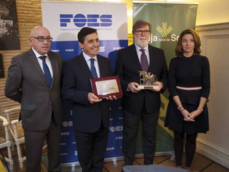 El Presidente de la Caja, Carlos Martínez Izquierdo, en nombre de la entidad soriana ha recibido el reconocimiento de FOES y como representante de los empresarios por ende del tejido empresarial de la provincia.