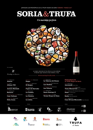 Un total de 17 restaurantes de Soria capital y provincia celebran durante los meses de febrero y marzo (entre el 3 de febrero y el 19 de marzo), las terceras jornadas Soria y Trufa, dedicadas a uno de los productos estrella de la gastronomía soriana. Los establecimientos ofrecerán menús temáticos con un claro protagonista: la Trufa Negra de Soria. La Agrupación Soriana de Hostelería y Turismo (ASOHTUR) ha puesto en marcha esta iniciativa a la que se suman otras acciones con el objetivo final de atraer al turismo gastronómico que busca degustar la mejor trufa negra fresca.