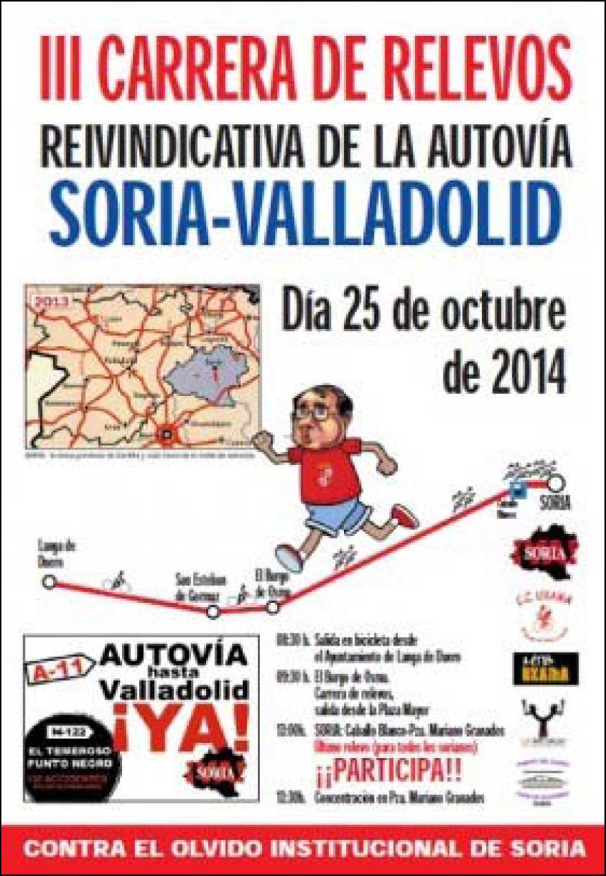 Desde la Plataforma Soria ¡YA!, de la cual FOES forma parte, se ha organizado una Carrera de Relevosreivindicativa sobre la Autovía Soria –Valladolid.