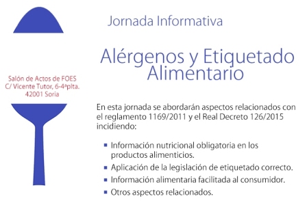 El próximo lunes 20 de abril tendrá lugar la tercera sesión del Ciclo de Jornadas informativas sobre Alérgenos y Etiquetado Alimentario, que se está celebrando desde el pasado 14 de abril y que concluirá el martes 21 de abril.