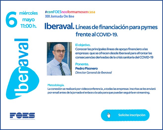 La Federación de Organizaciones Empresariales Sorianas (FOES) explora las posibilidades de financiación de autónomos y empresas mediante la organización de la jornada gratuita ‘Iberaval: Líneas de financiación para pymes frente al COVID-19’ conducida por Pedro Pisonero, director general de la sociedad de garantía líder en España en formalización de avales.
