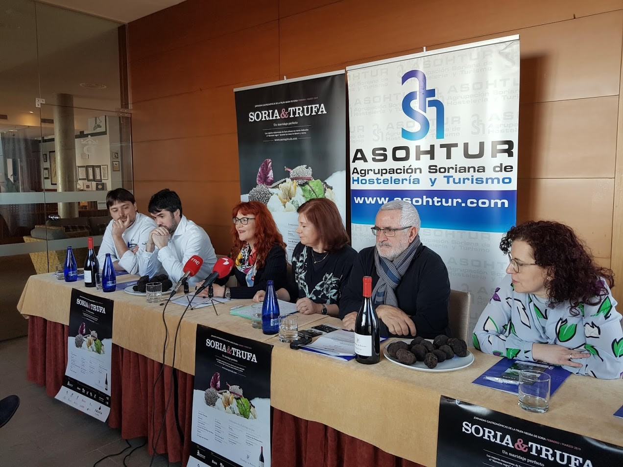 Las quintas jornadas de Soria y Trufa, dedicadas a uno de los productos estrella de la gastronomía soriana, reúnen en esta ocasión a 11 restaurantes de Soria capital y provincia y a cinco restaurantes colaboradores que oficiarán como embajadores de la Trufa Negra de Soria en España. Los establecimientos pondrán lo mejor de su saber culinario en los menús que se ofrecerán durante todo el mes de febrero y hasta el 31 de marzo. La Agrupación Soriana de Hostelería y Turismo (ASOHTUR) organiza de nuevo esta iniciativa que busca atraer al público que quiere degustar la mejor trufa negra fresca en la época en la que alcanza su máxima madurez y aroma.
