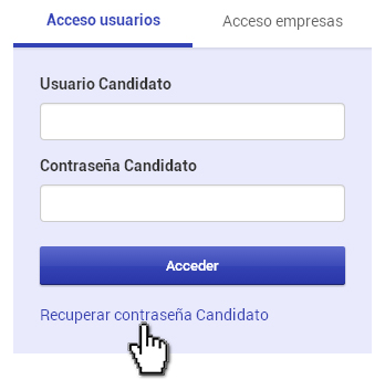 Cada perfil, tanto candidato como Empresa tendrá su proceso diferente de recuperación de empresa, de este modo para recuperar la contraseña de: