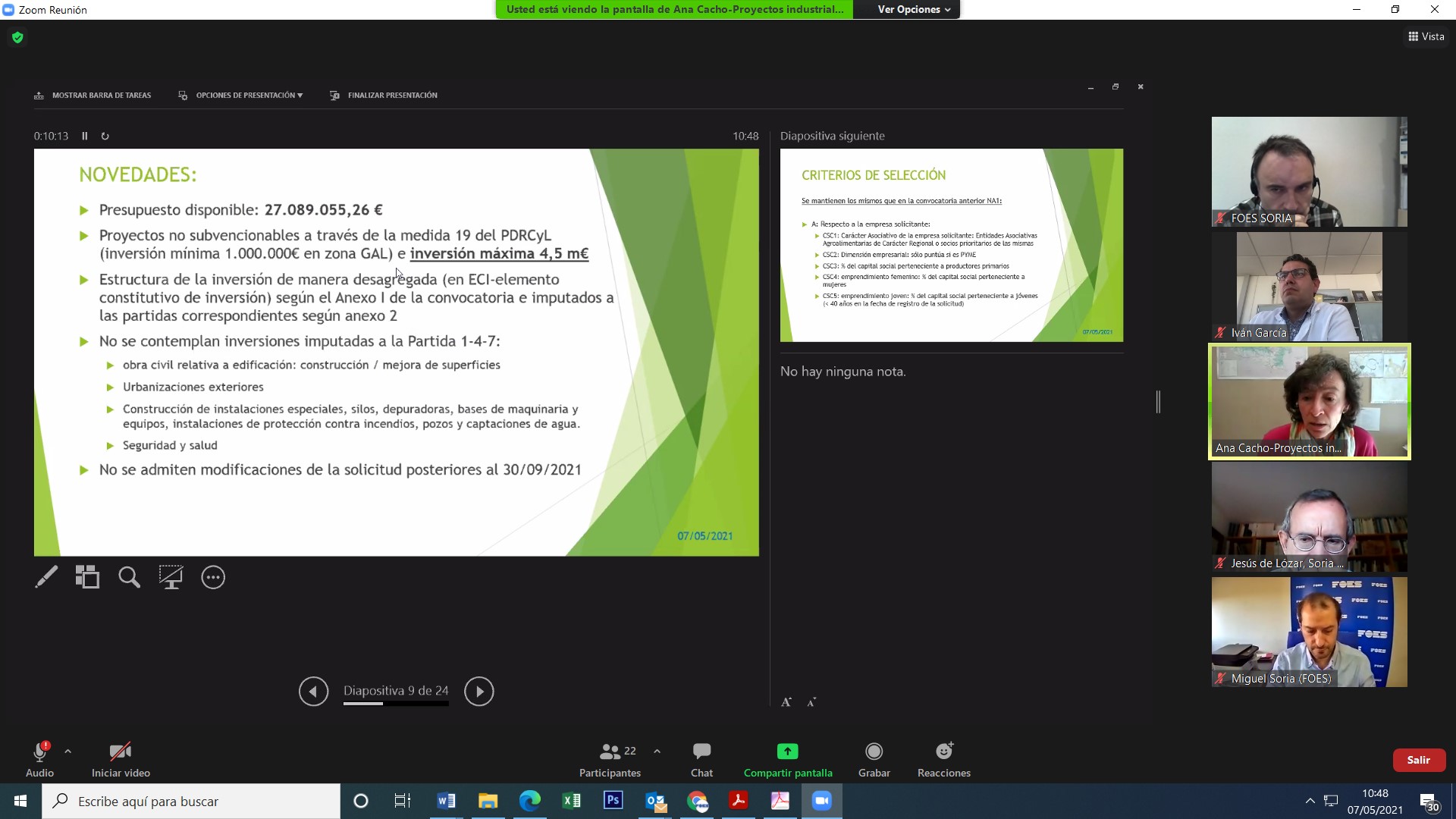 Ana María Cacho, jefa de Sección de Proyectos Industriales del Servicio Territorial de Agricultura y Ganadería de Soria, ha impartido el ‘Taller práctico Líneas de Ayuda para la transformación y comercialización de productos agrarios, silvícolas y de la alimentación de Castilla y León’ organizado por la Federación de Organizaciones Empresariales Sorianas.