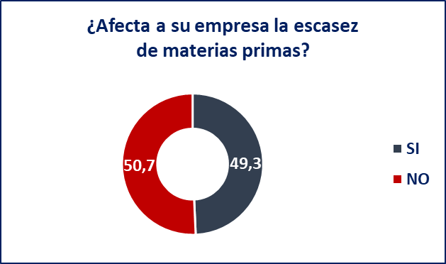 La mitad de las empresas de la provincia se ve condicionada por la falta de materias primas. De este porcentaje, el 58,3% está “muy afectado” y, a consecuencia de esta crisis, sufre encarecimiento de productos (el 52,9%), se ve forzado a extremar la búsqueda de nuevos canales de suministro (32,4%) y, en el peor de los casos, cae en la imposibilidad de producir (14,7%).