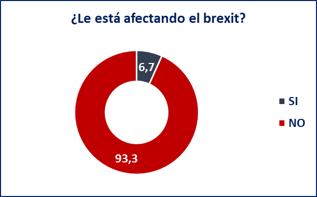 Frente a estas dos grandes crisis, la salida del Reino Unido de la Unión Europea, Brexit, pasa más inadvertida en el tejido productivo de la provincia aunque el 6,7% de las empresas consultadas dice sentirse afectada por ella.